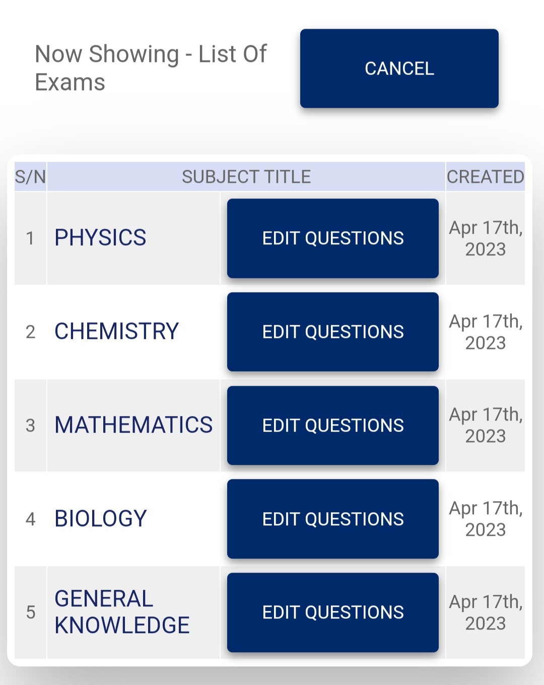 The admin can add or modify questions at will. This is how to go about it.
