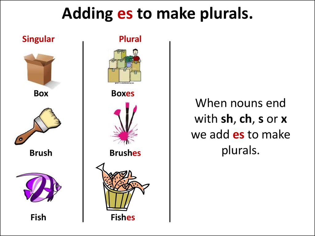 Adding `es ` to words that end in o, x, ch, sh, s, etc
